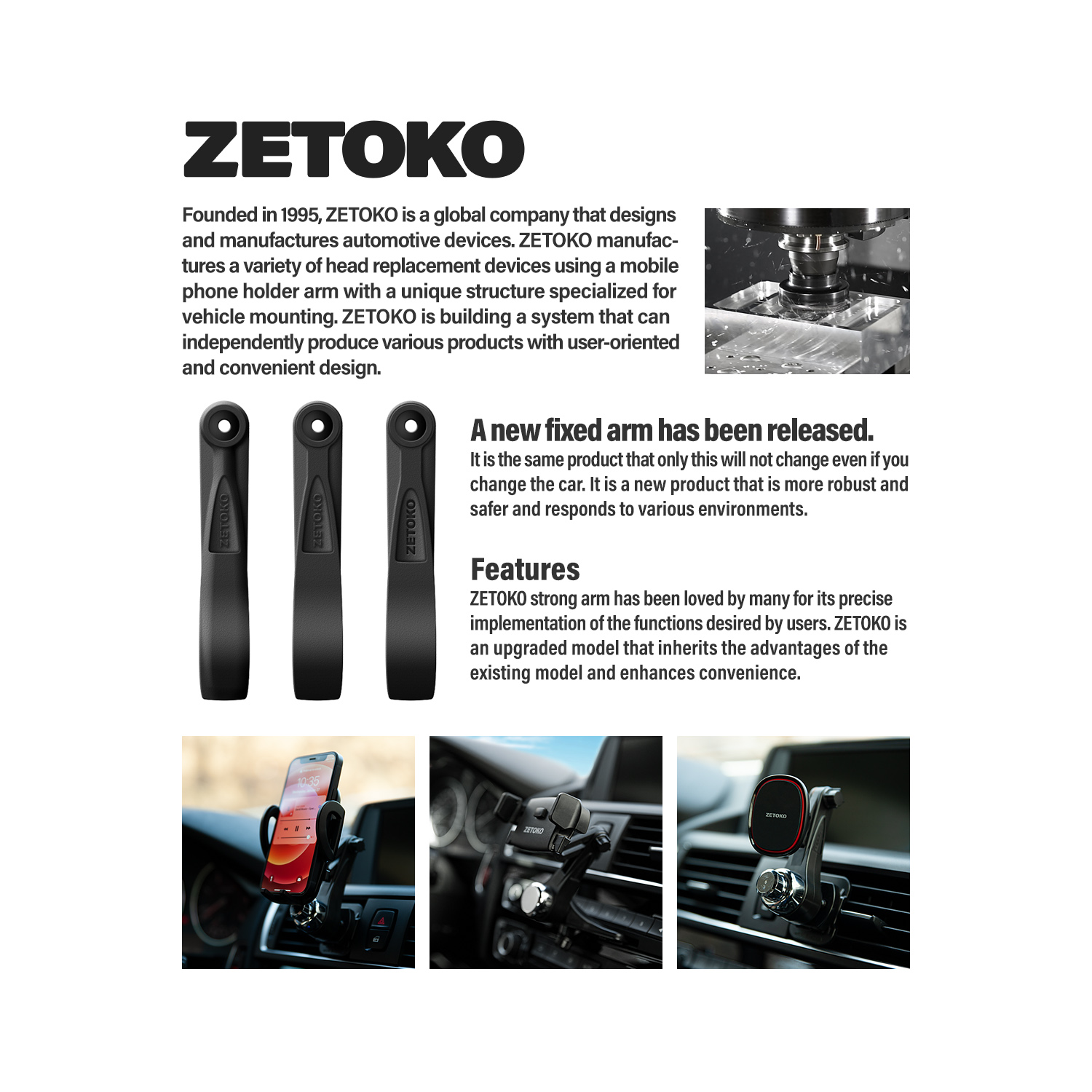 Founded in 1995, ZETOKO is a global company that designs, designs and manufactures automotive devices. ZETOKO manufactures a variety of head replacement devices using a mobile phone holder arm with a unique structure specialized for vehicle mounting. ZETOKO is building a system that can independently produce various products with user-oriented and convenient design.