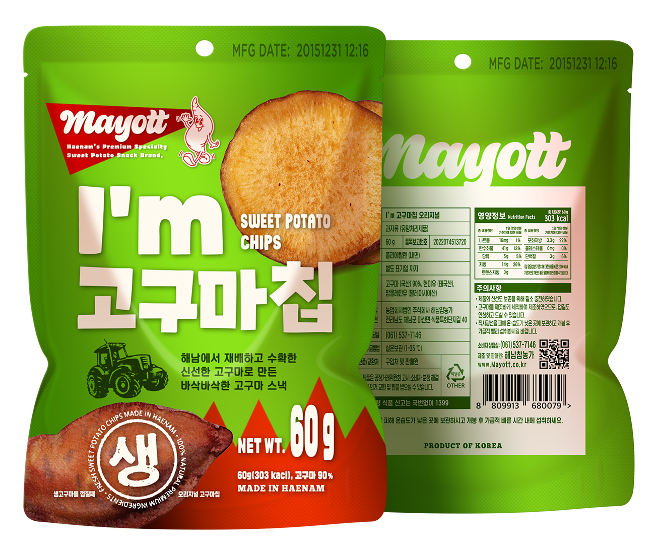 해남의 특산 작물 고구마를 가공한 고구마칩 패키지 디자인.