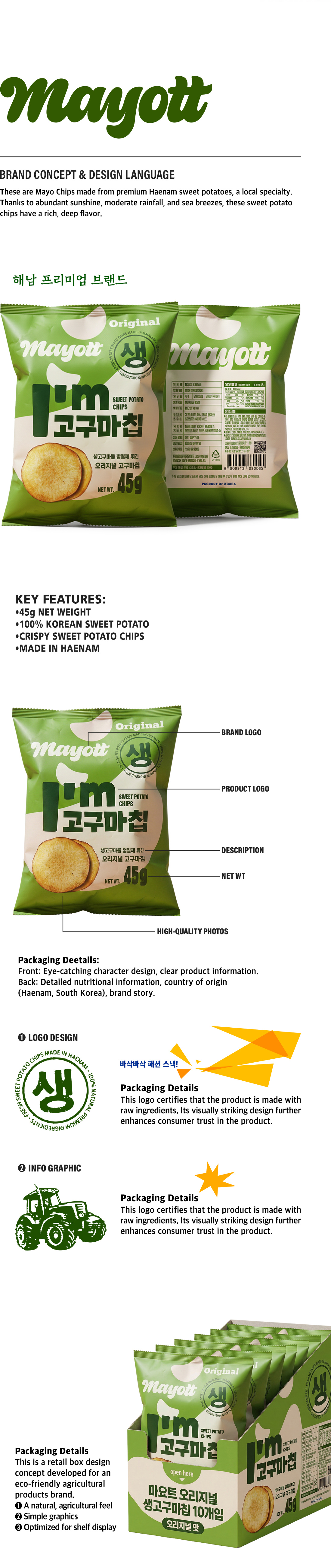 해남의 특산 작물 고구마를 가공한 고구마칩 패키지 디자인.