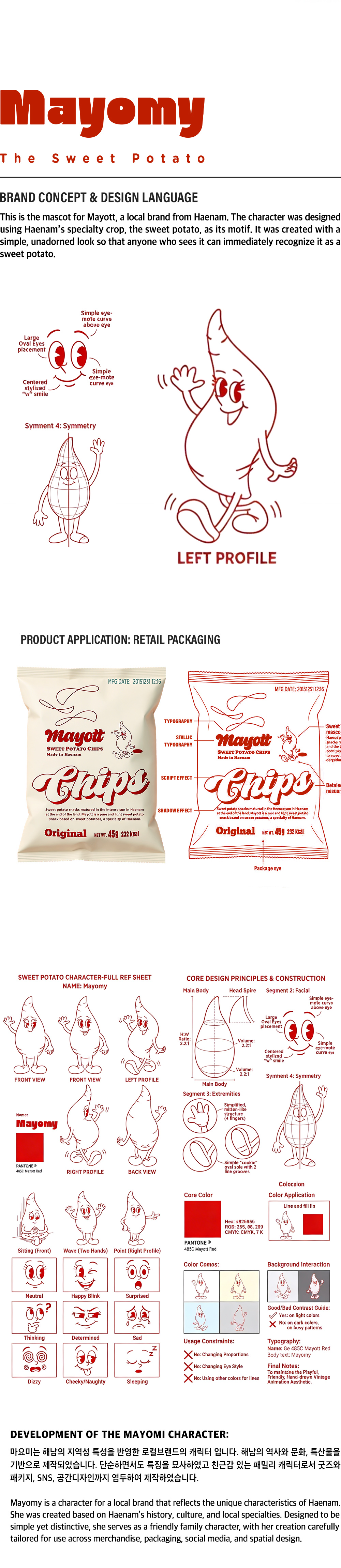 해남의 로컬브랜드 마요뜨의 캐릭터 입니다. 이 캐릭터는 해남의 특산작물인 고구마를 모티브로 제작되었습니다. 누가 보아도 고구마라는것을 알 수 있도록 꾸밈 없이 담백한 느낌으로 제작하였습니다.